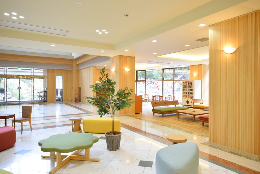 <ロビー>大自然のある屋外だけでなく、屋内でも木々に囲まれ、心地の良い空間となっています。