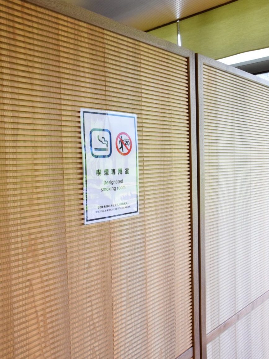 喫煙のご案内も、無機質にならず、木に囲まれて、さりげなく。吉野林業発祥の地ならではのおもてなしです。