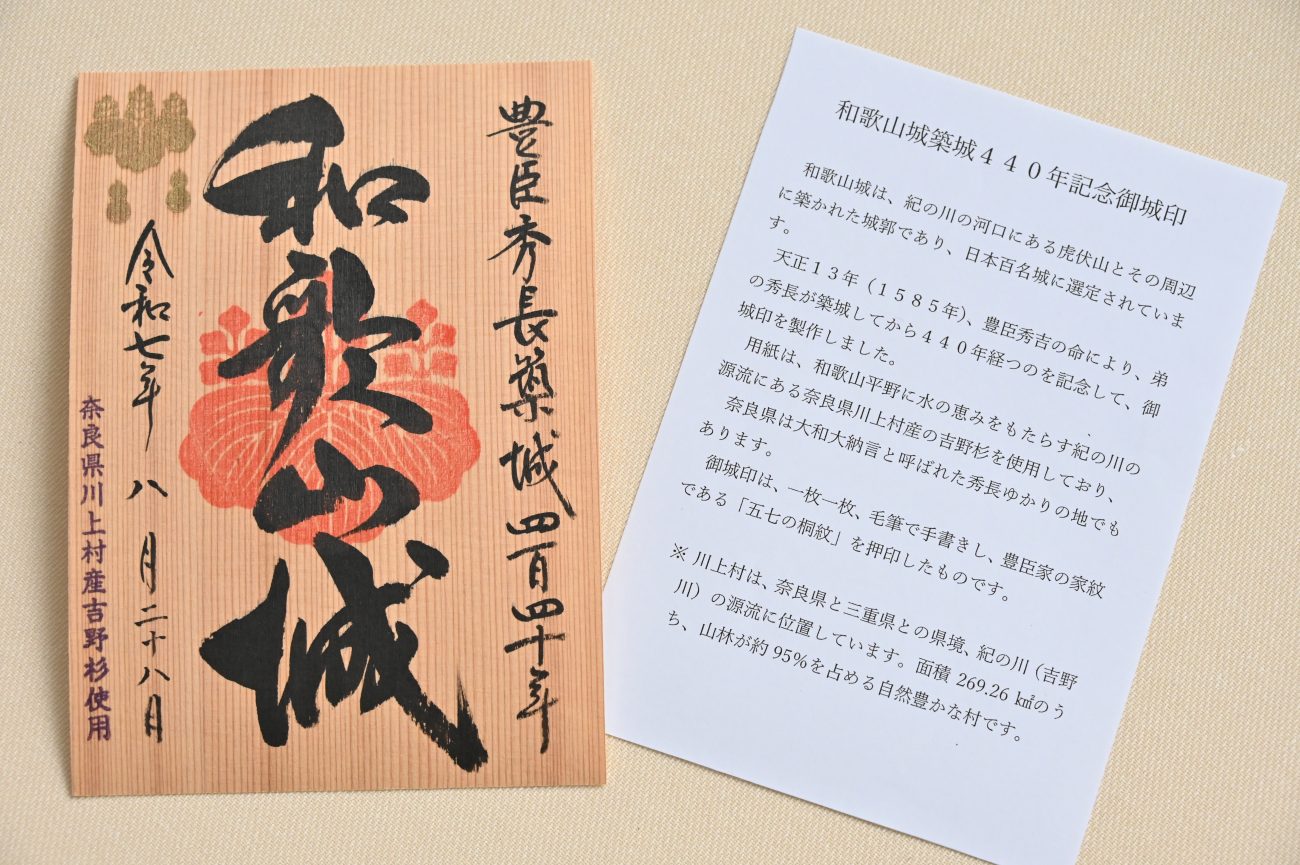 この度、紀の川の源流である川上村吉野林業とのご縁で、和歌山市観光協会により発売された和歌山城築城440年記念版御城印に、「吉野杉の紙」をご採用いただきました。